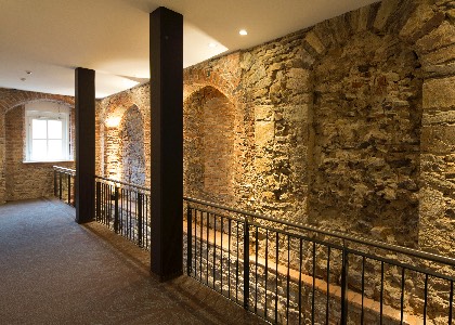 Das besondere Augenmerk, im Inneren des Gebäudes, richtet sich auf die mehrgeschossige Domburgmauer, welche aufwändig rekonstruiert wurde.